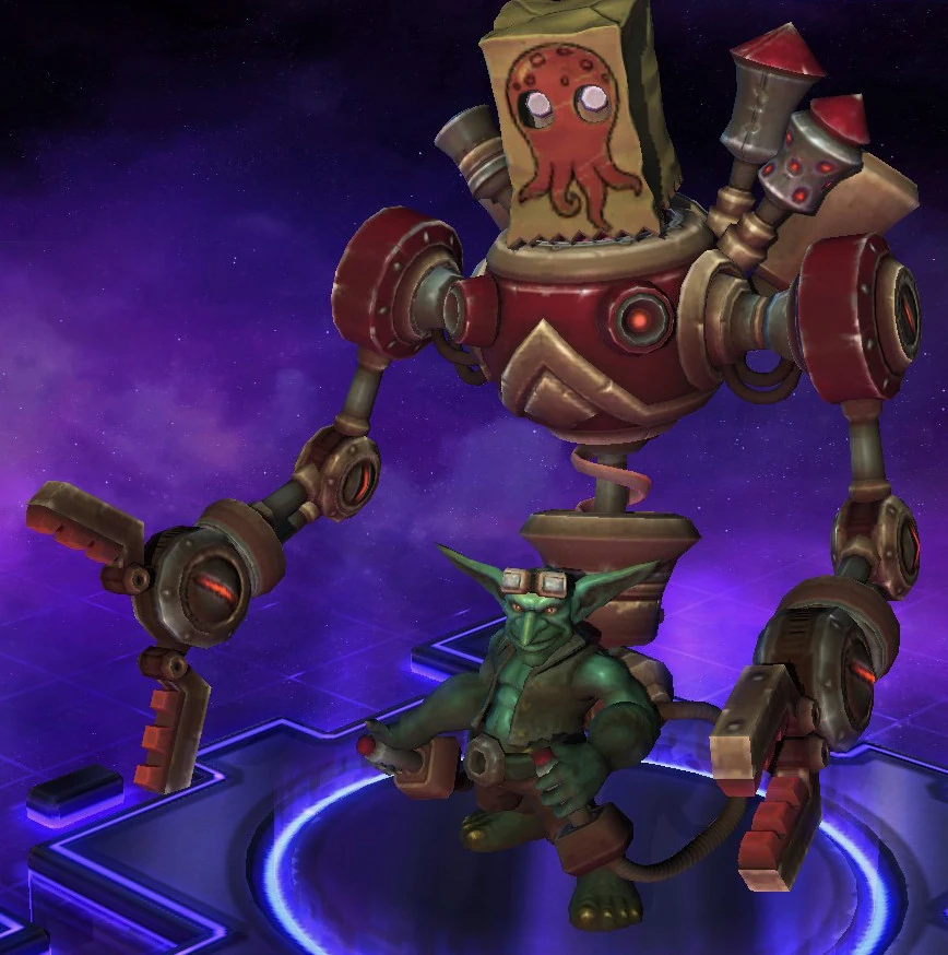 | 10 | Robogoblin (R) Activar para volverte imparable durante 1.5 segundos. Pasivo: Los ataques básicos infligen 80 más de daño durante 5 segundos, lo que se acumula hasta 3 veces. |