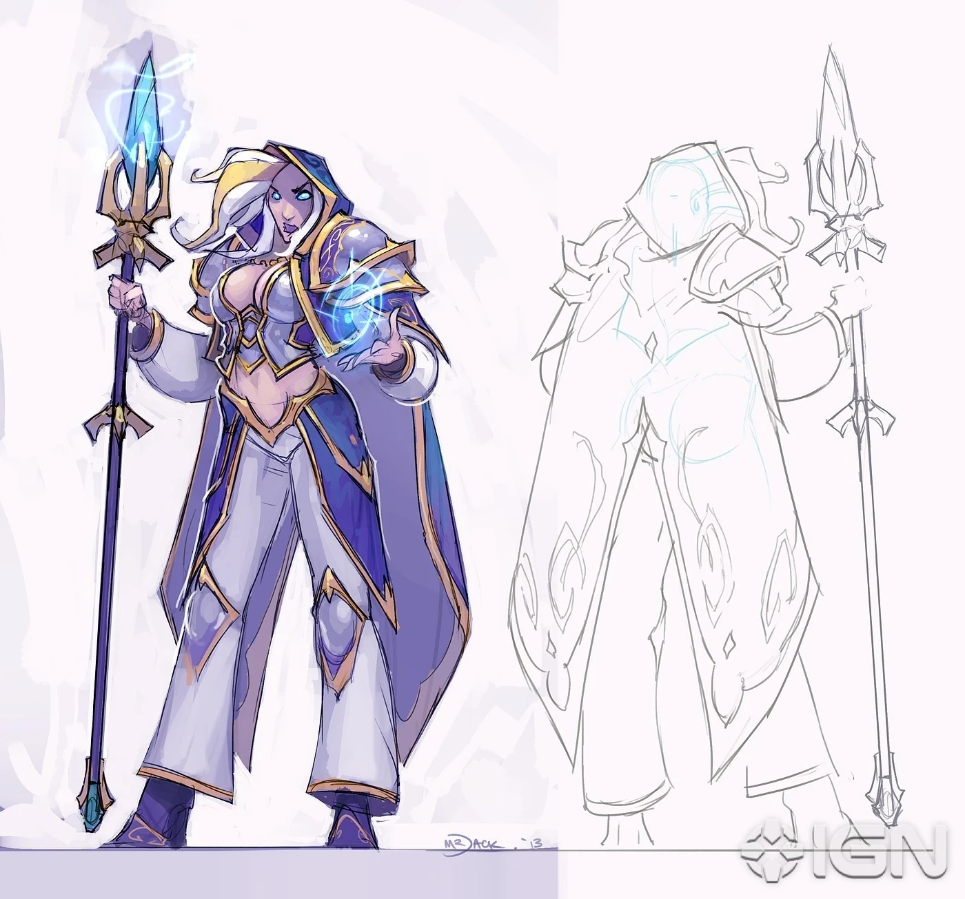 - Cuando se introdujo a Jaina, el equipo artístico se fijó en su versión de Warcraft III, y después añadió elementos de su modelo de World of Warcraft.[1]