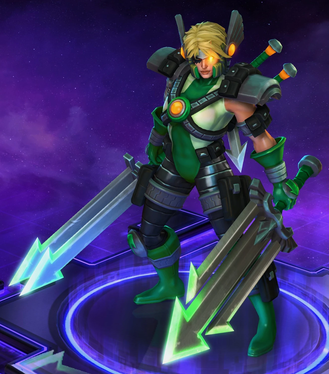 | Notas: Este aspecto forma parte del tema de héroes de otros universos fusionándose con Warcraft. | |||||||||||||||||||||||||||||||||||||||||||||||||||||||||||||||||||||||||||||||||||||||||||||||||||||||||||||||||||||||||||||||||||||||||||||||||||||||||||||||||||||||||||||||||||||||||||||||||||||||