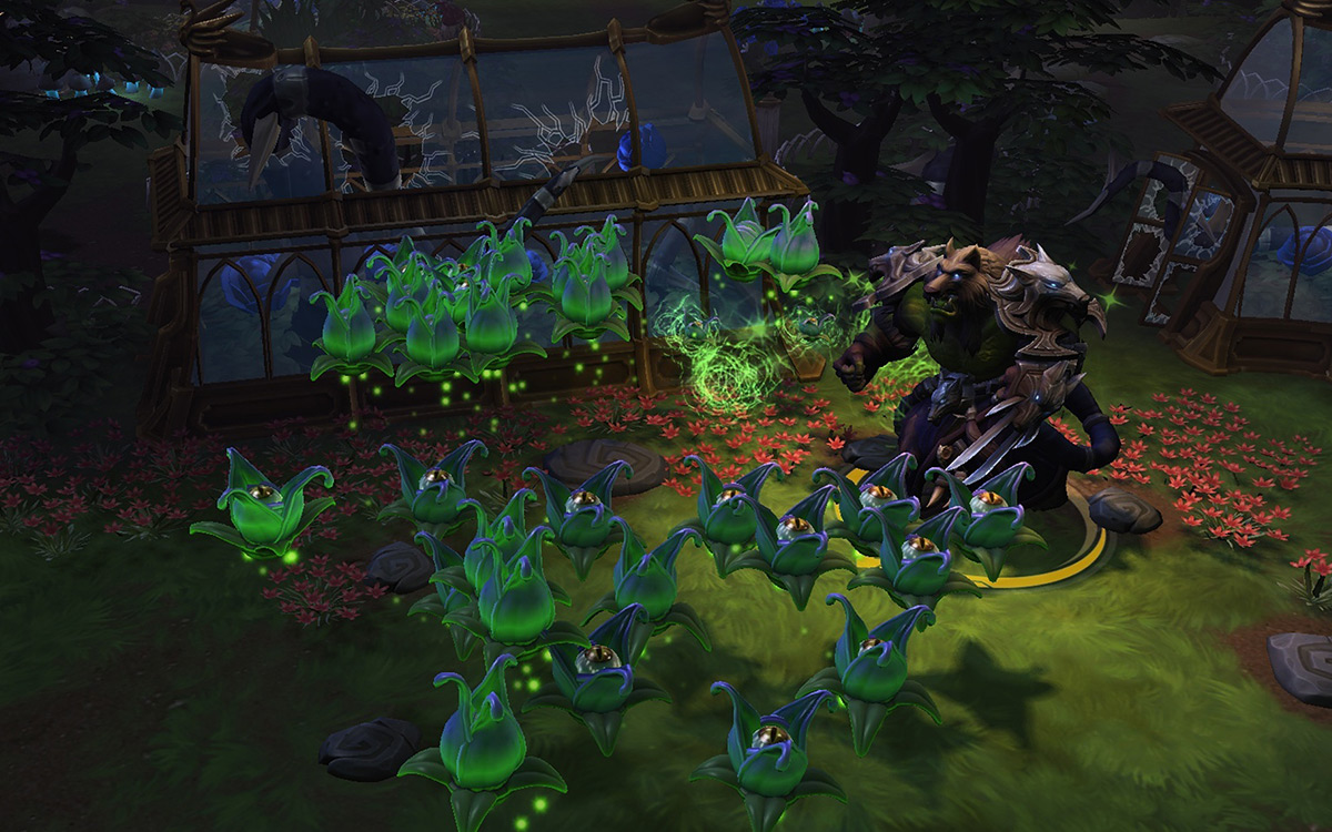 Early on in development for Garden of Terror, the night cycle actually reduced player vision range significantly – this is a mechanic that the developers felt was interesting in Warcraft 3 and wanted to explore it. Ultimately, they didn't end up doing this for a couple of reasons. First off, it tended to result in more passive play, players were scared to move around the map without their team. It also set a more dreary and dark tone for the match.The development team felt that this could psychologically take a toll on the player.[2]
