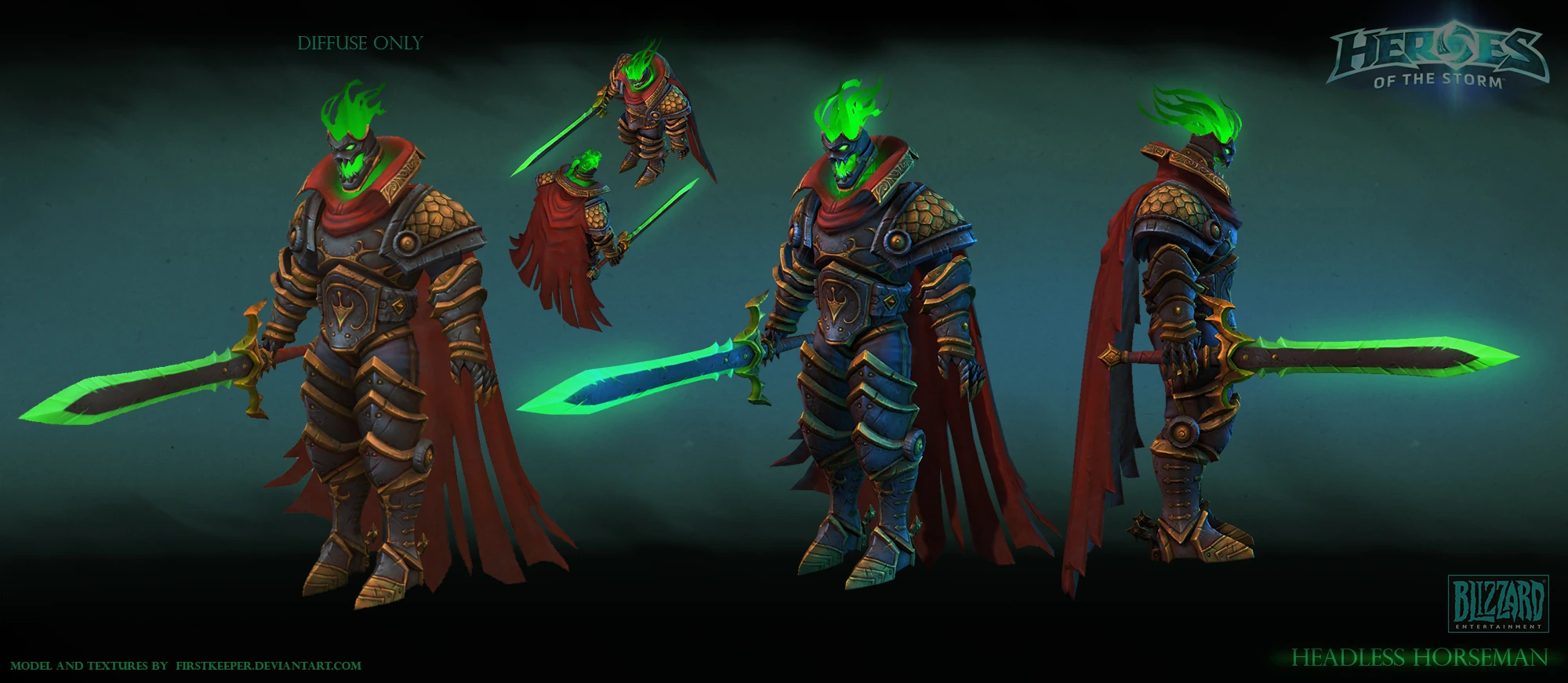 The Headless Horseman is an undead knight from the Warcraft franchise. The Horseman acts as the boss mercenary on the Towers of Doom battleground and is the announcer of the Hallow's End Brawl. He first spawns after 5:00 minutes into the game and respawn after 5:00 minutes.