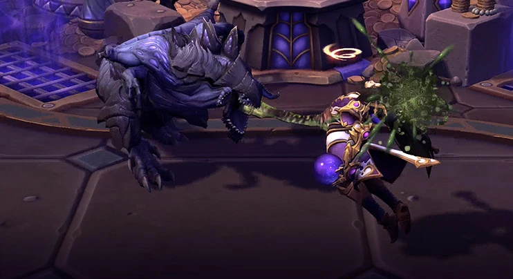 One large difference in Heroes of the Storm to other MOBAs is that it doesn't have a dedicated Jungle in the sense that you have one hero dedicated to being in it all of the time, and then ganking lanes in between Jungle routes. Instead, Heroes of the Storm has some battlegrounds where you'll want to spend some time in the Jungle, but once you defeat a mercenary camp you can actually capture it, sending that camp to push a nearby lane. Some maps have a more dedicated Jungler depending on how many of these camps there are.[2]