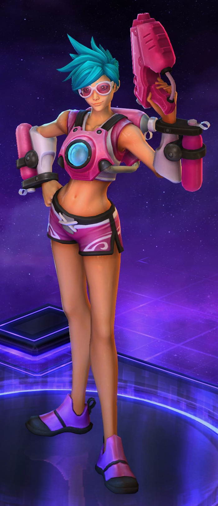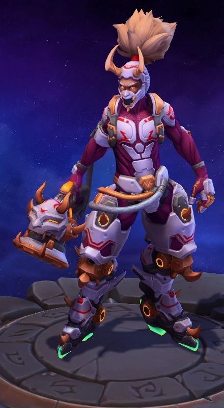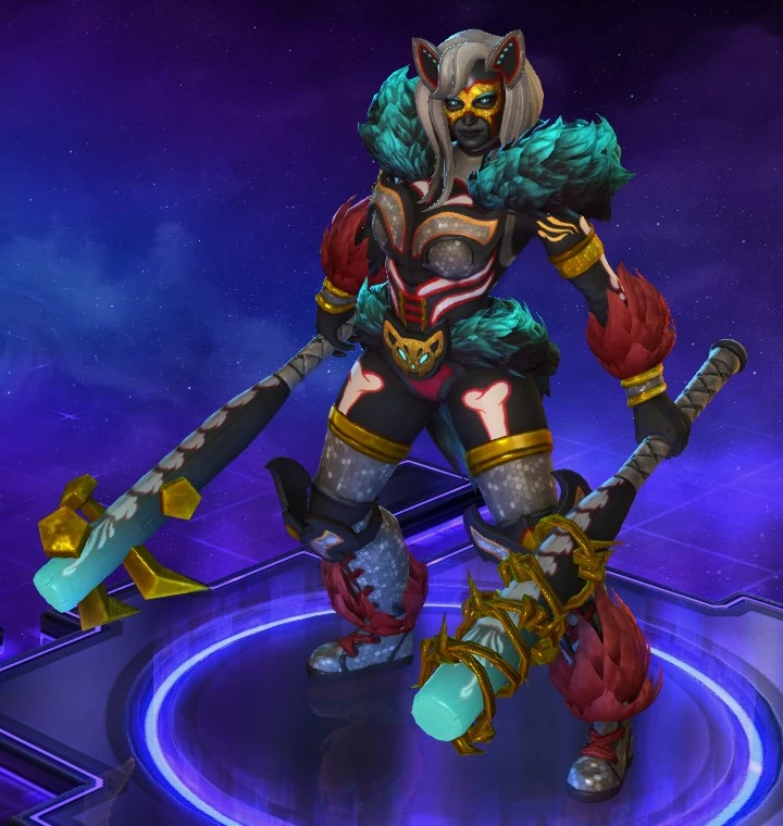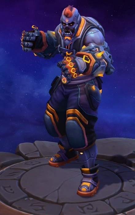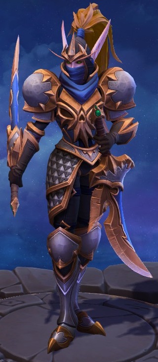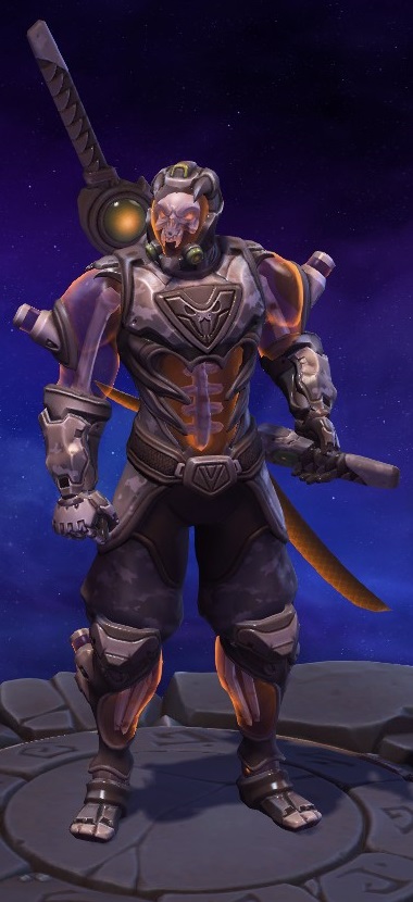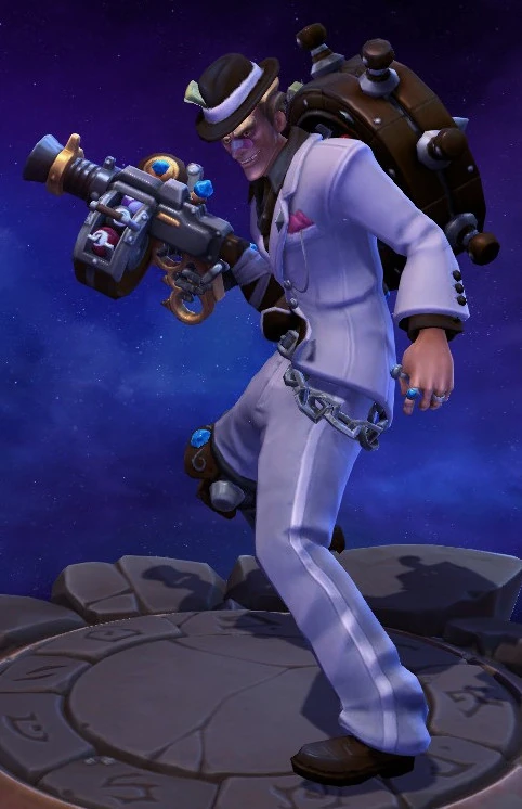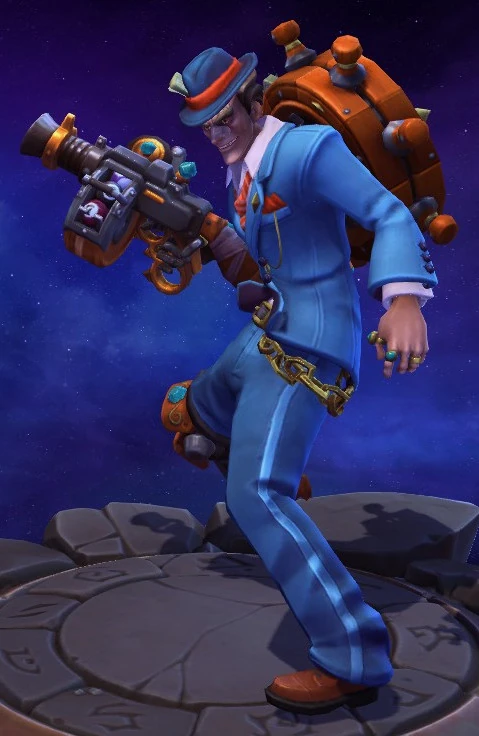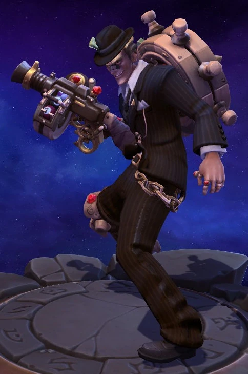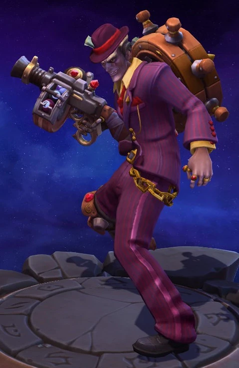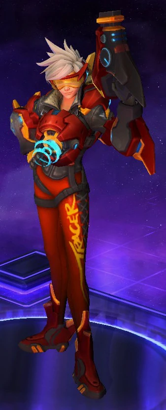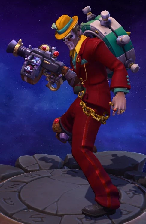 Skins are the cosmetic changes that change a character's appearance. Each Hero has a default skin, and additional skins can be bought from the In-Game Shop, with some forming a shared theme with other character skins. Each skin also has three variations, referred to as tints.