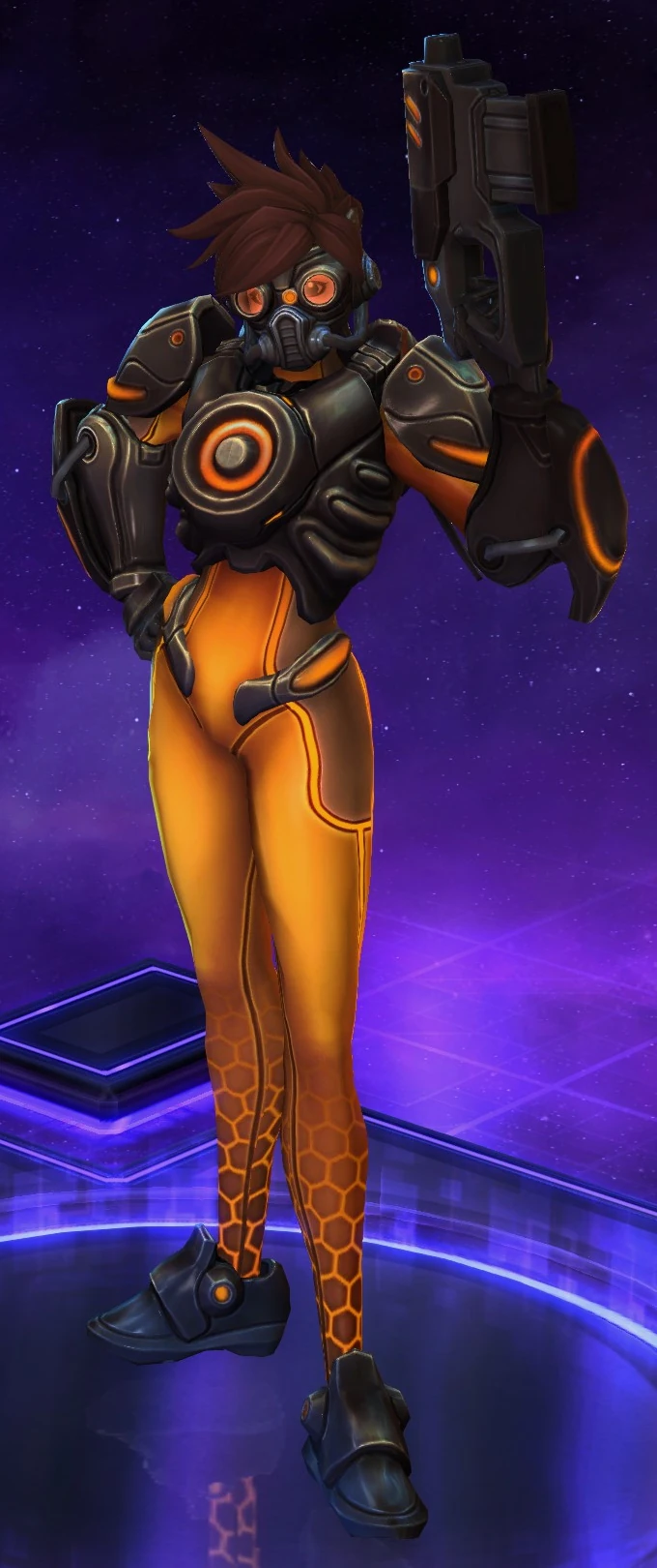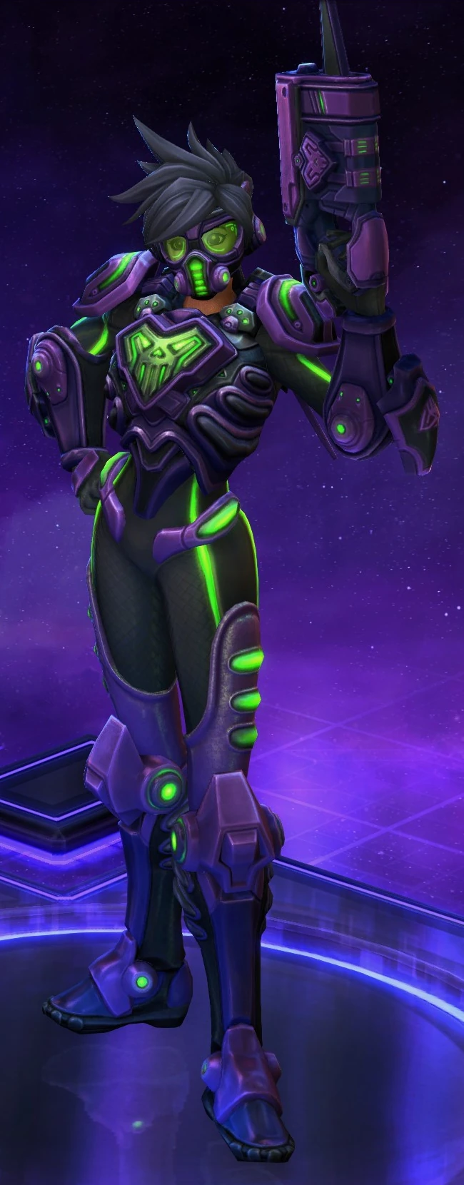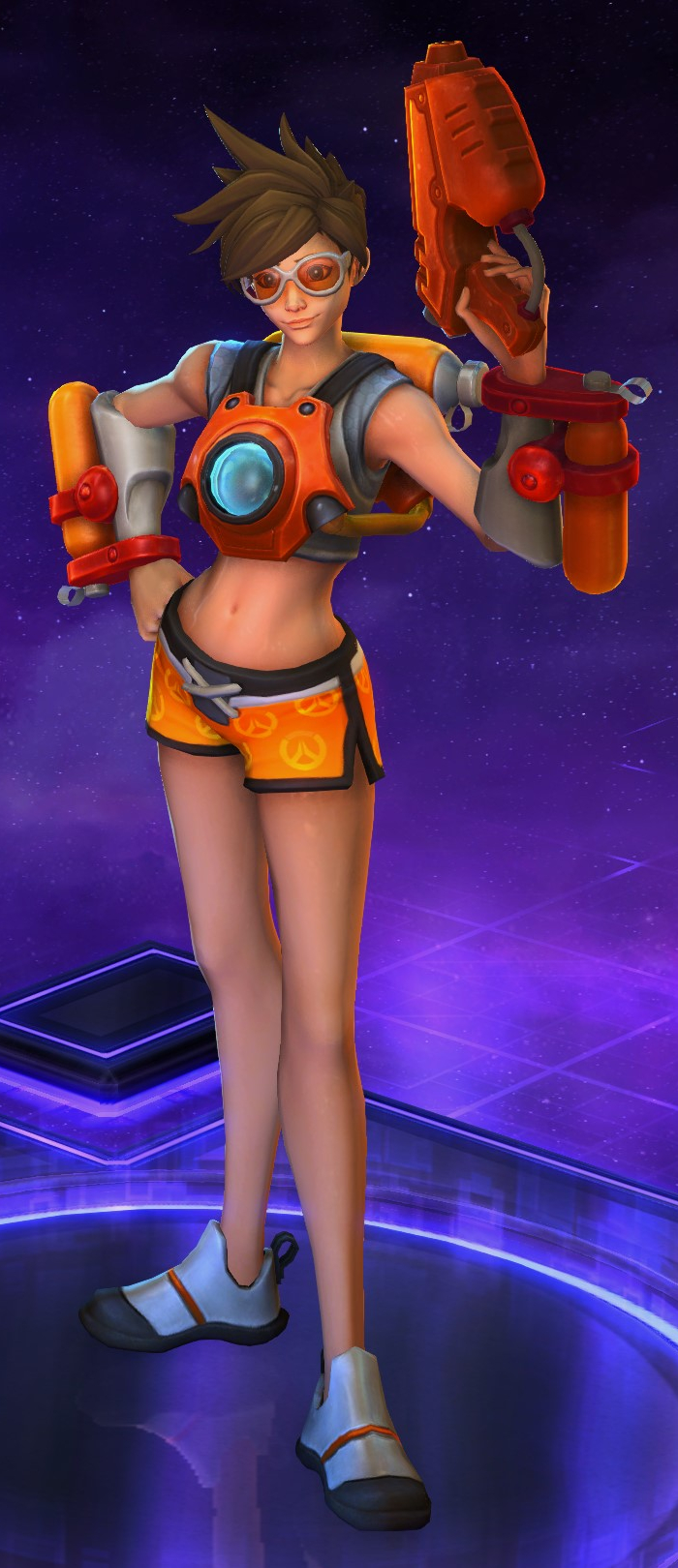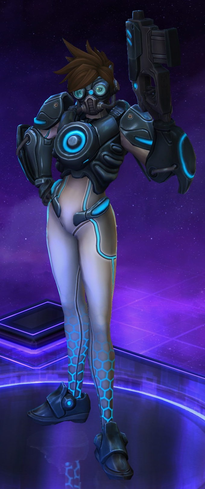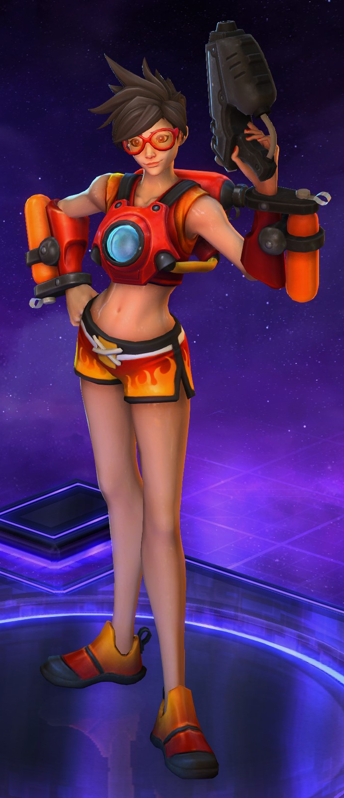 Skins are the cosmetic changes that change a character's appearance. Each Hero has a default skin, and additional skins can be bought from the In-Game Shop, with some forming a shared theme with other character skins. Each skin also has three variations, referred to as tints.