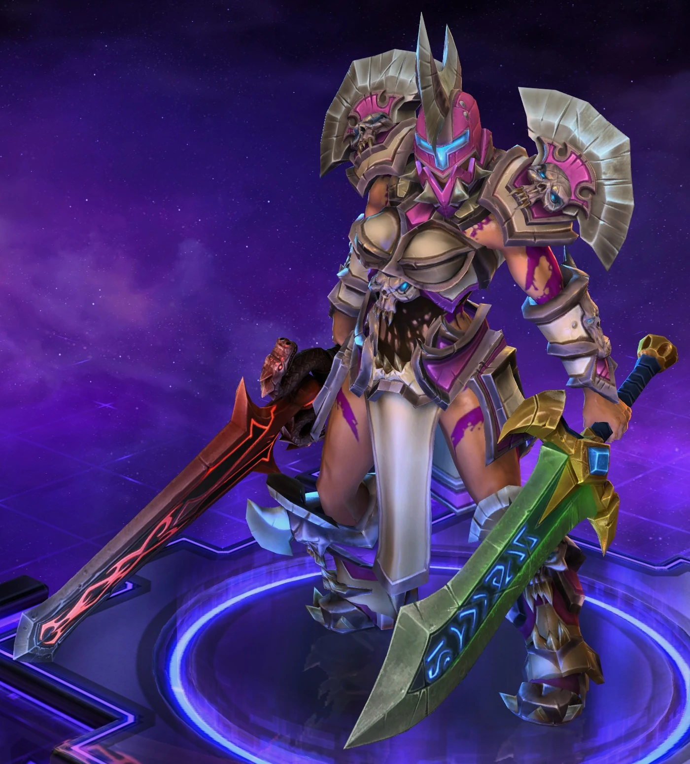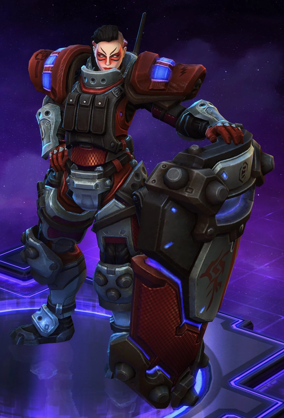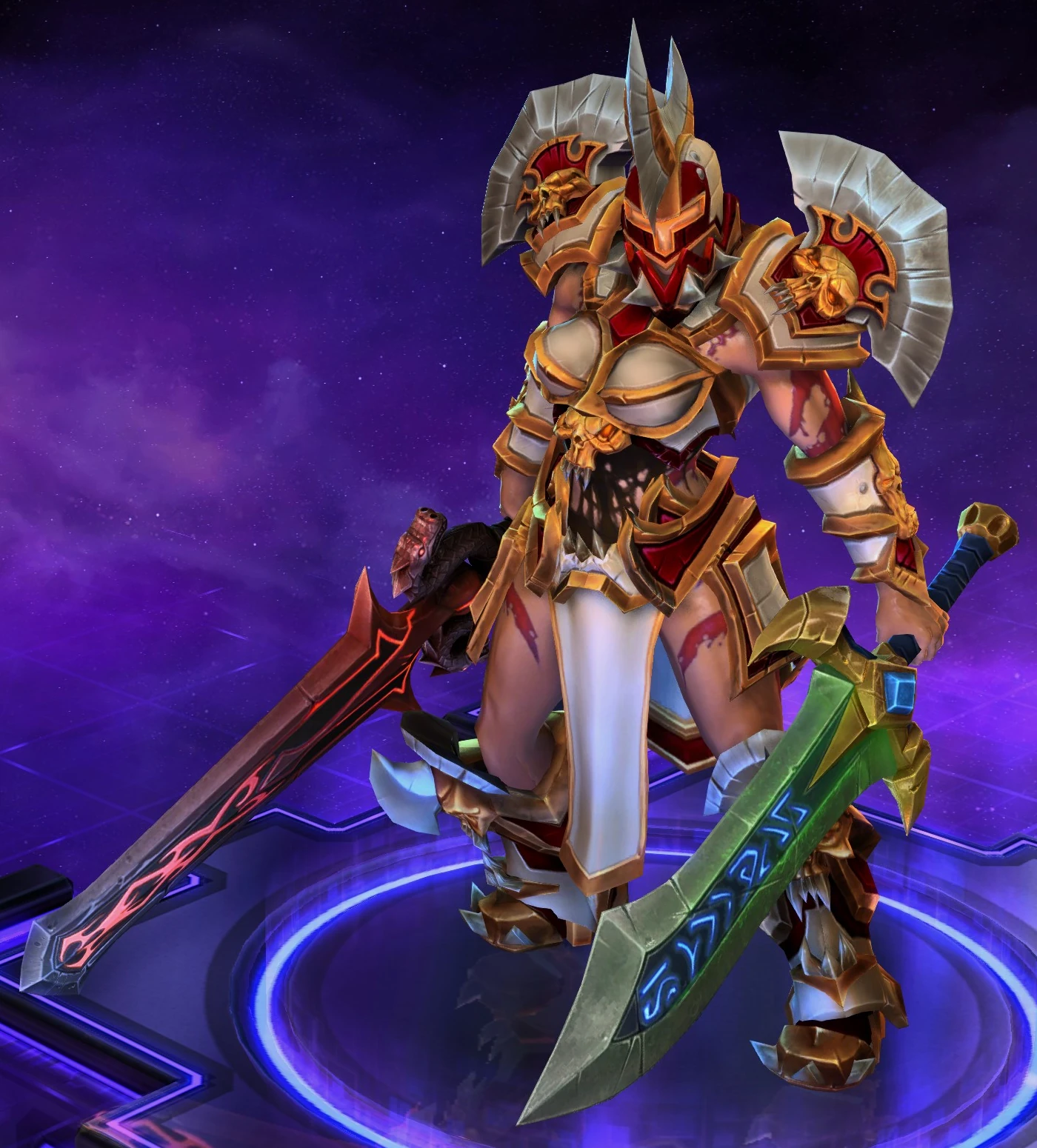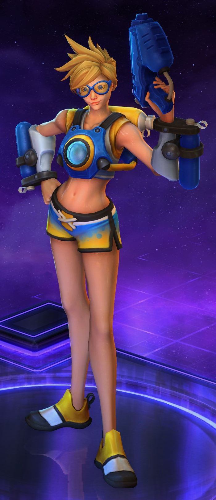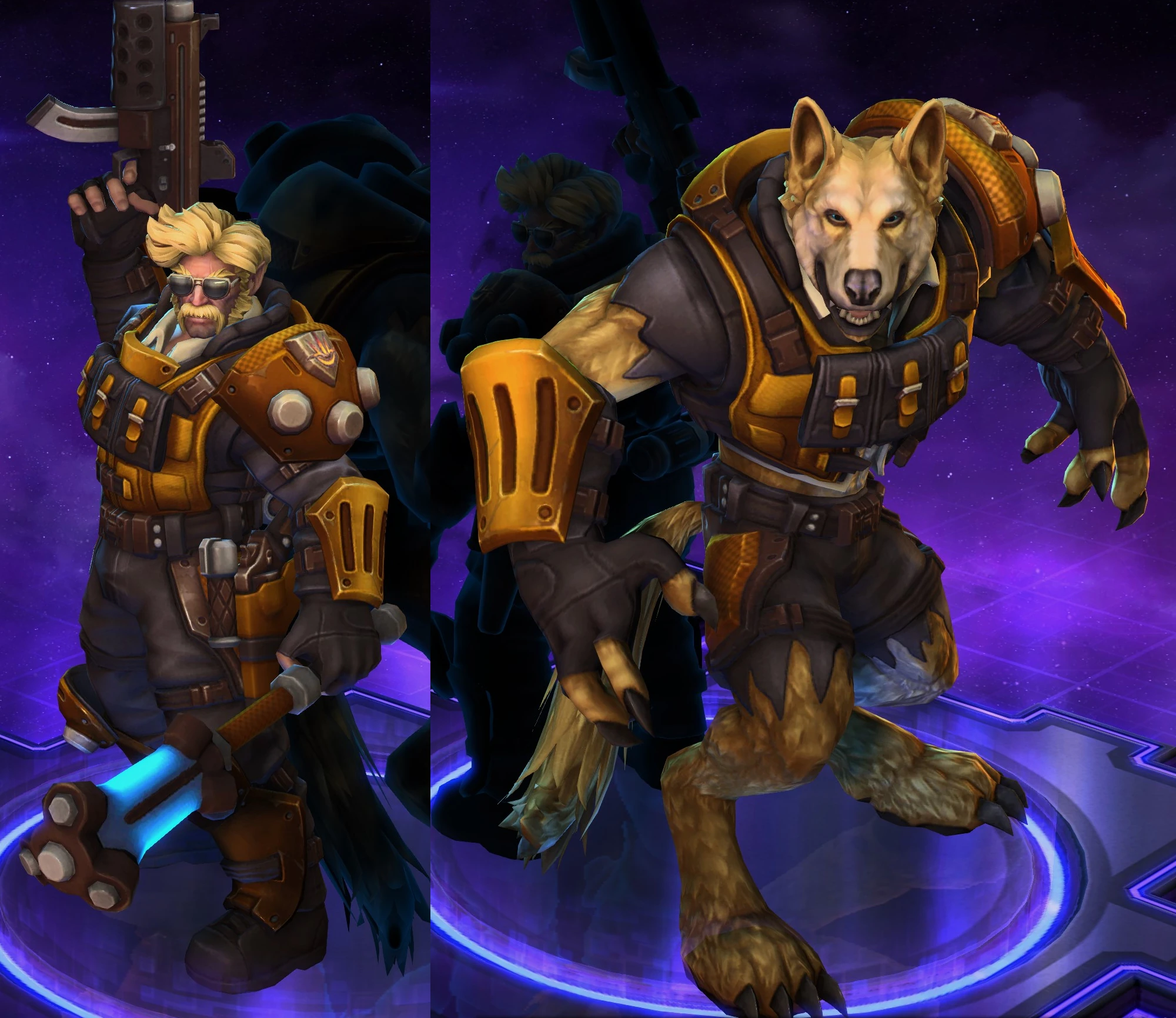Skins are the cosmetic changes that change a character's appearance. Each Hero has a default skin, and additional skins can be bought from the In-Game Shop, with some forming a shared theme with other character skins. Each skin also has three variations, referred to as tints.