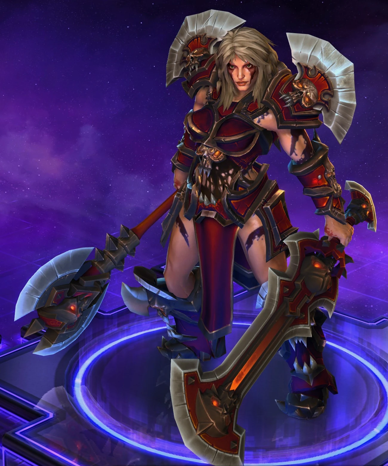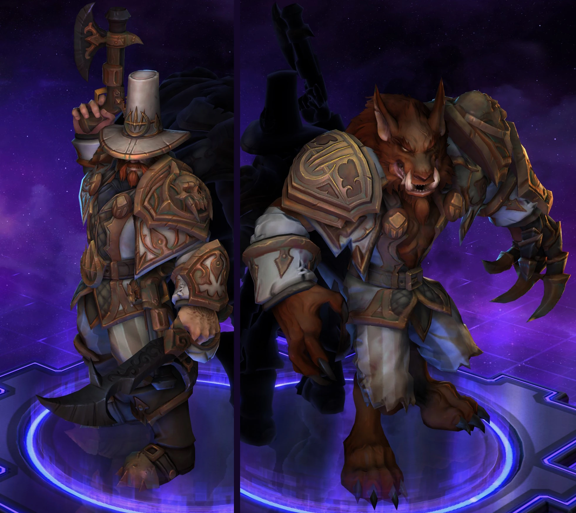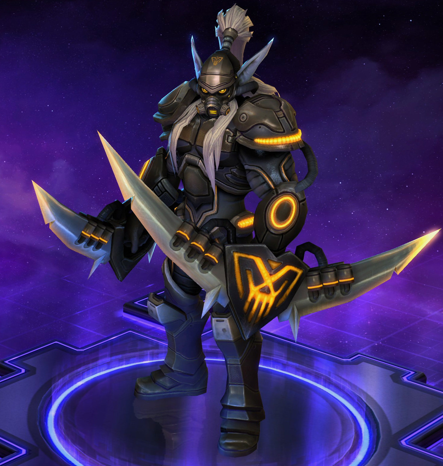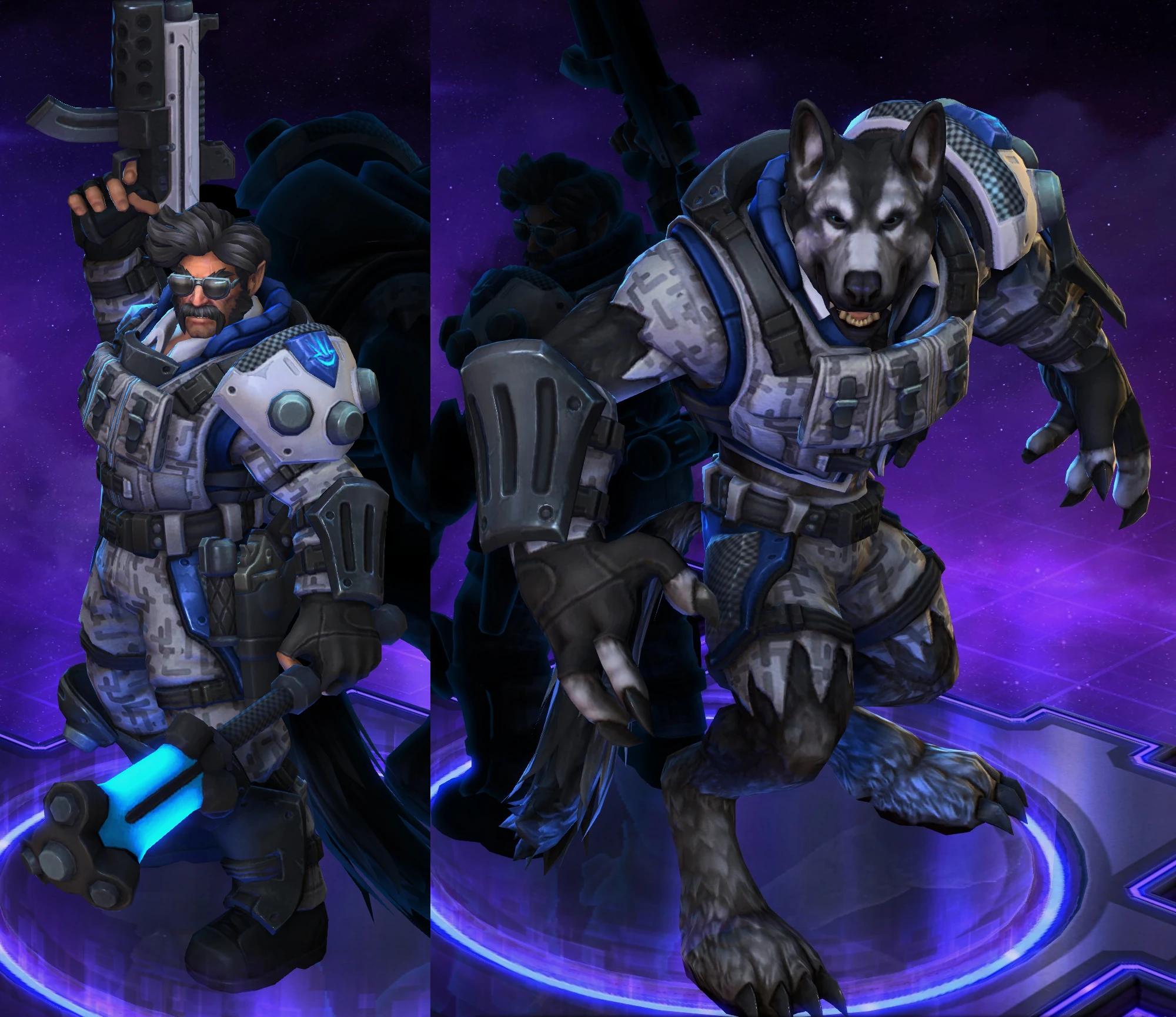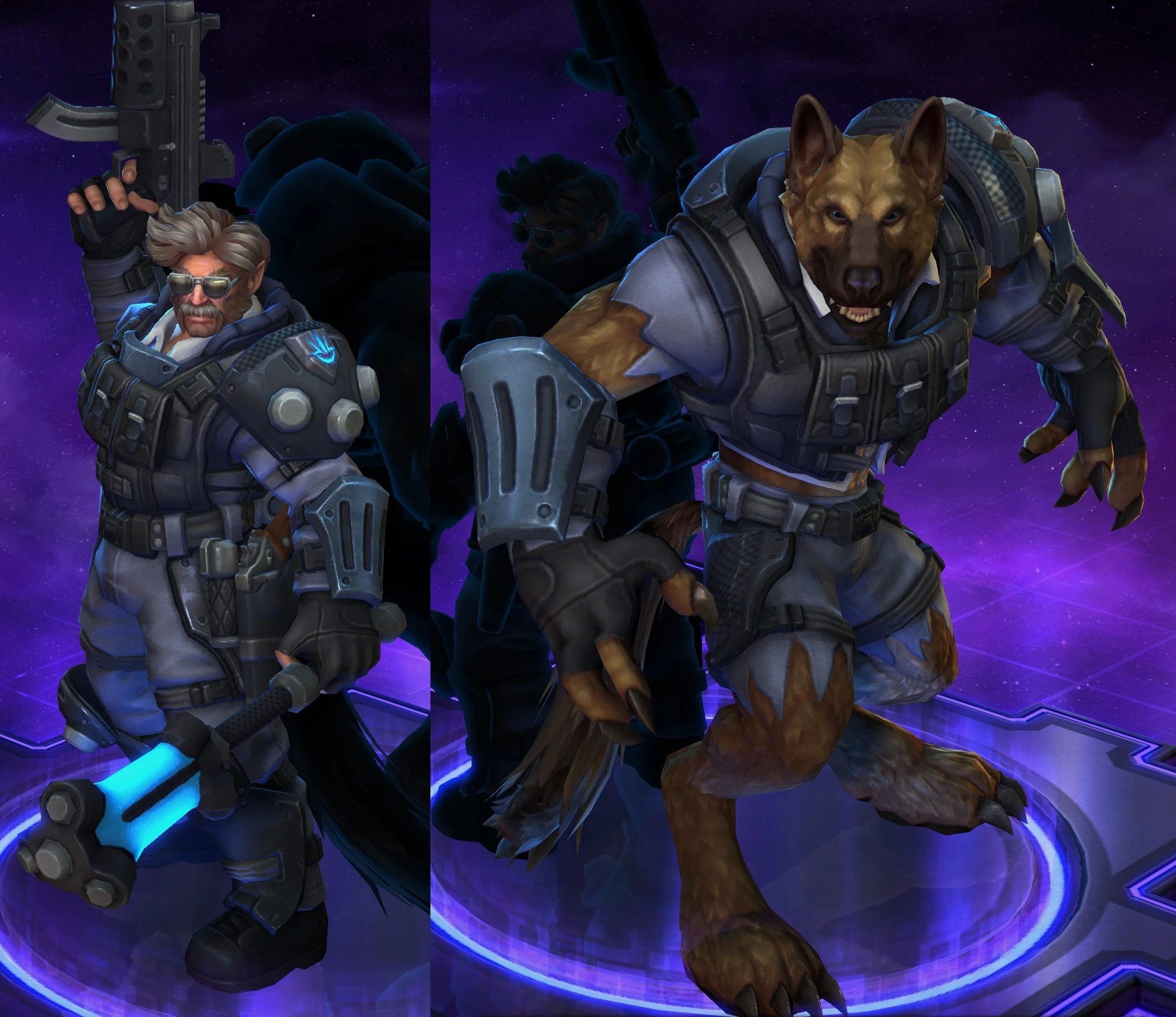 Skins are the cosmetic changes that change a character's appearance. Each Hero has a default skin, and additional skins can be bought from the In-Game Shop, with some forming a shared theme with other character skins. Each skin also has three variations, referred to as tints.