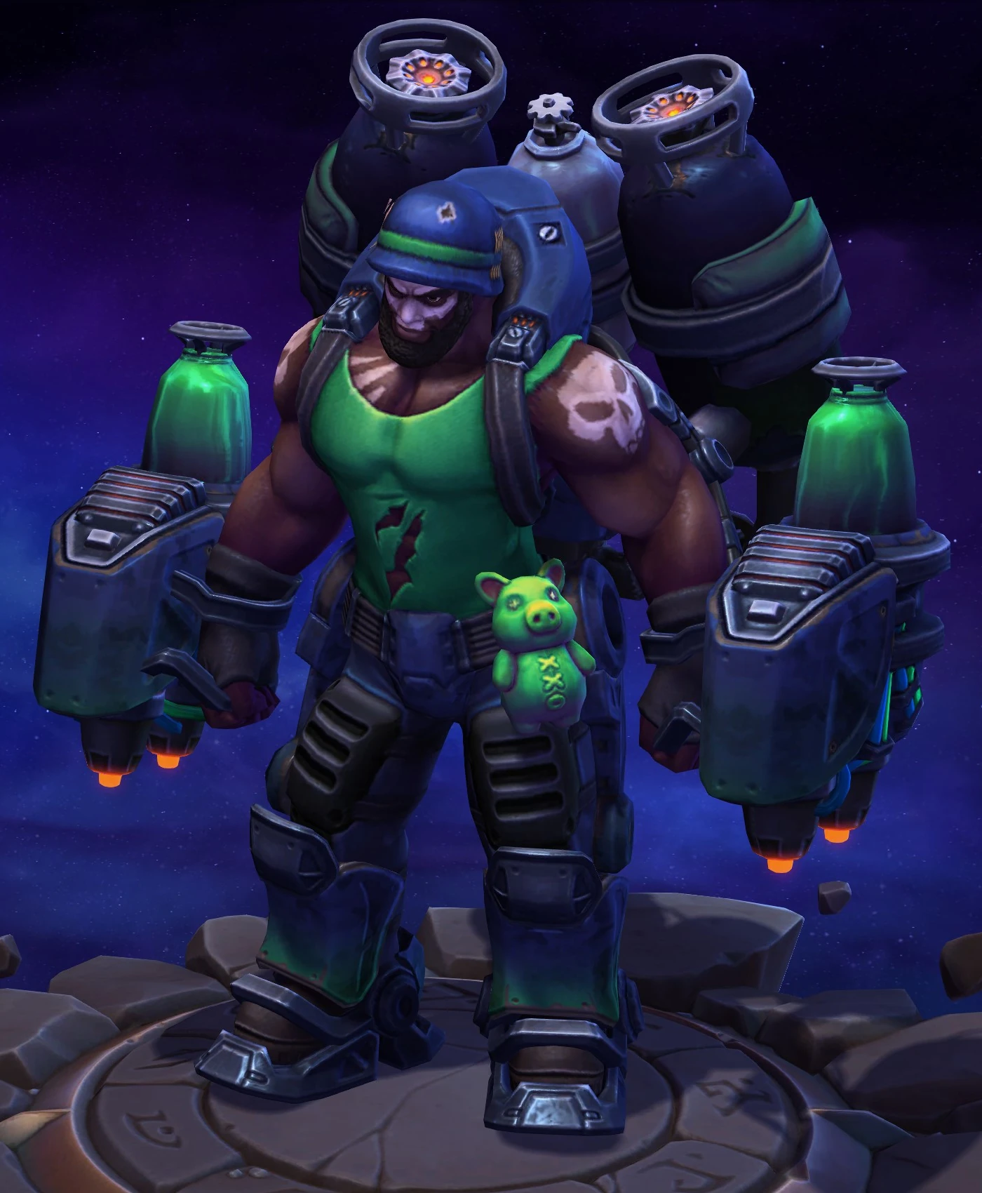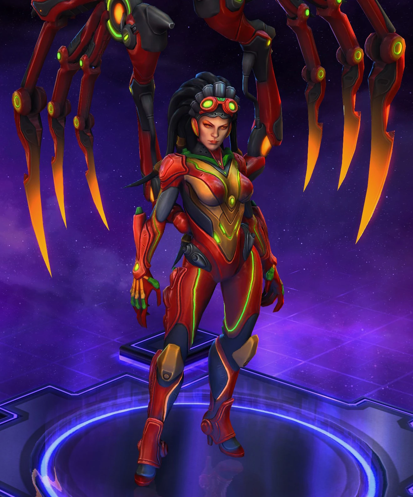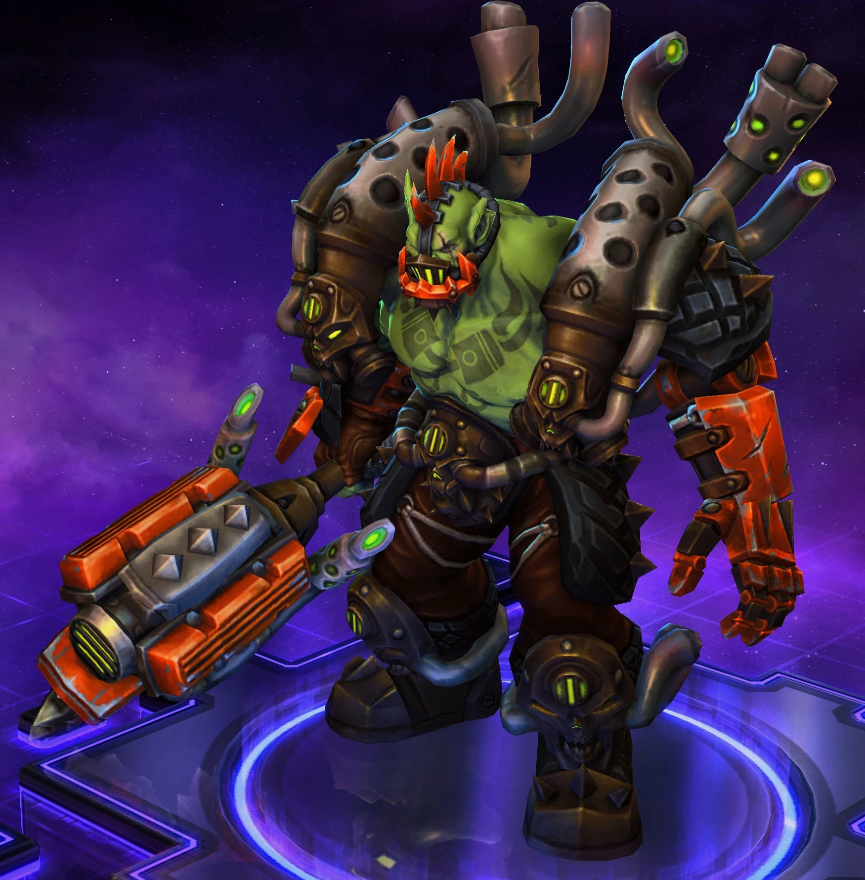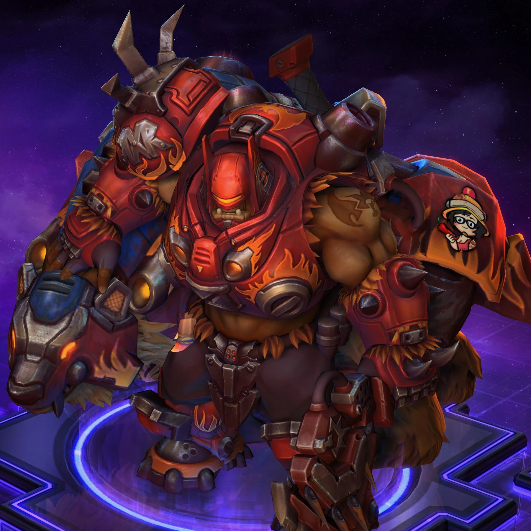 Skins are the cosmetic changes that change a character's appearance. Each Hero has a default skin, and additional skins can be bought from the In-Game Shop, with some forming a shared theme with other character skins. Each skin also has three variations, referred to as tints.
