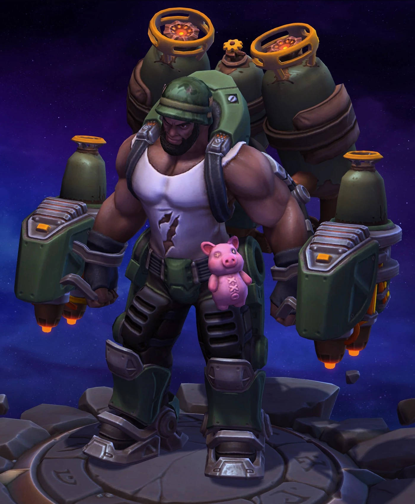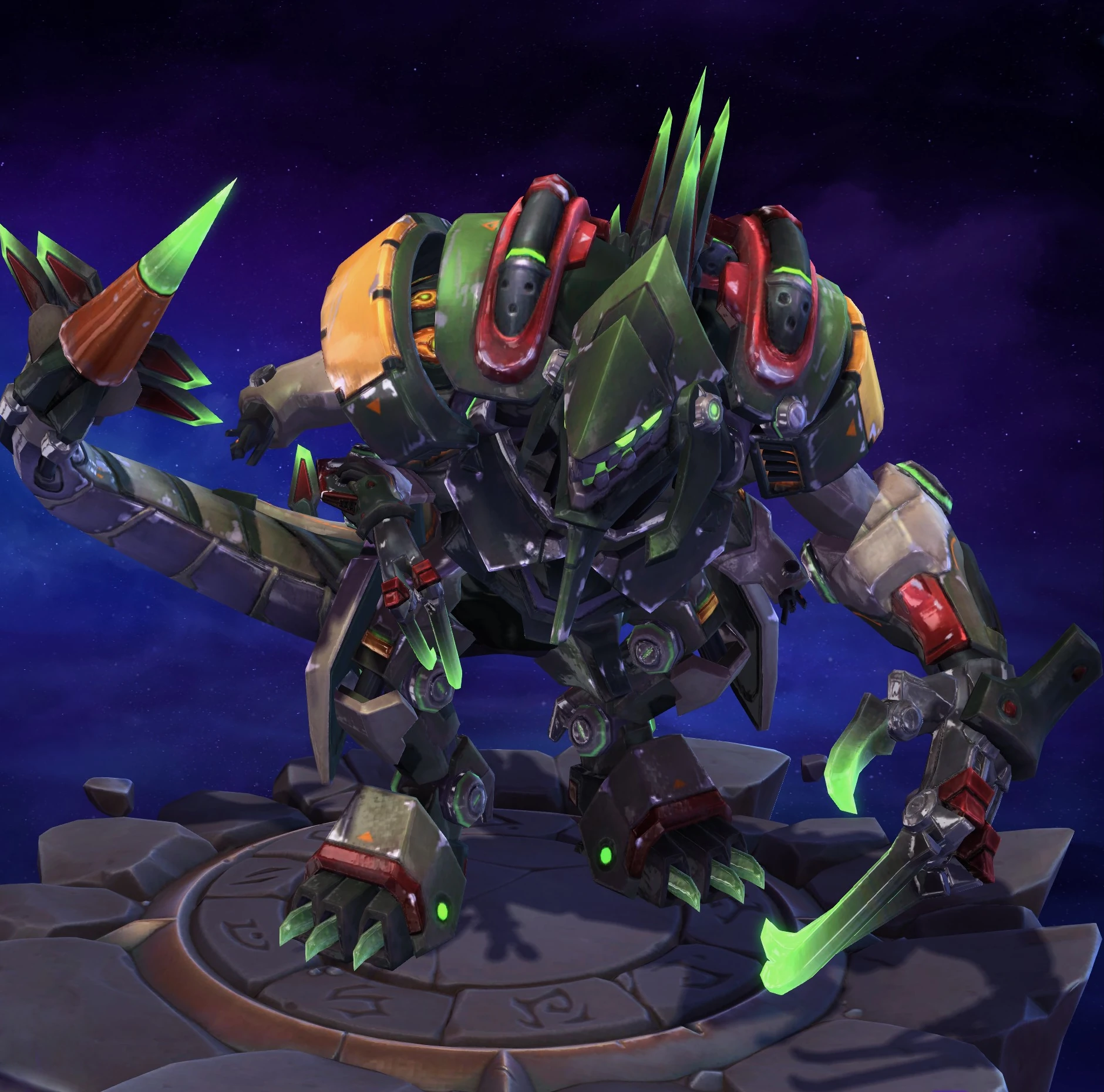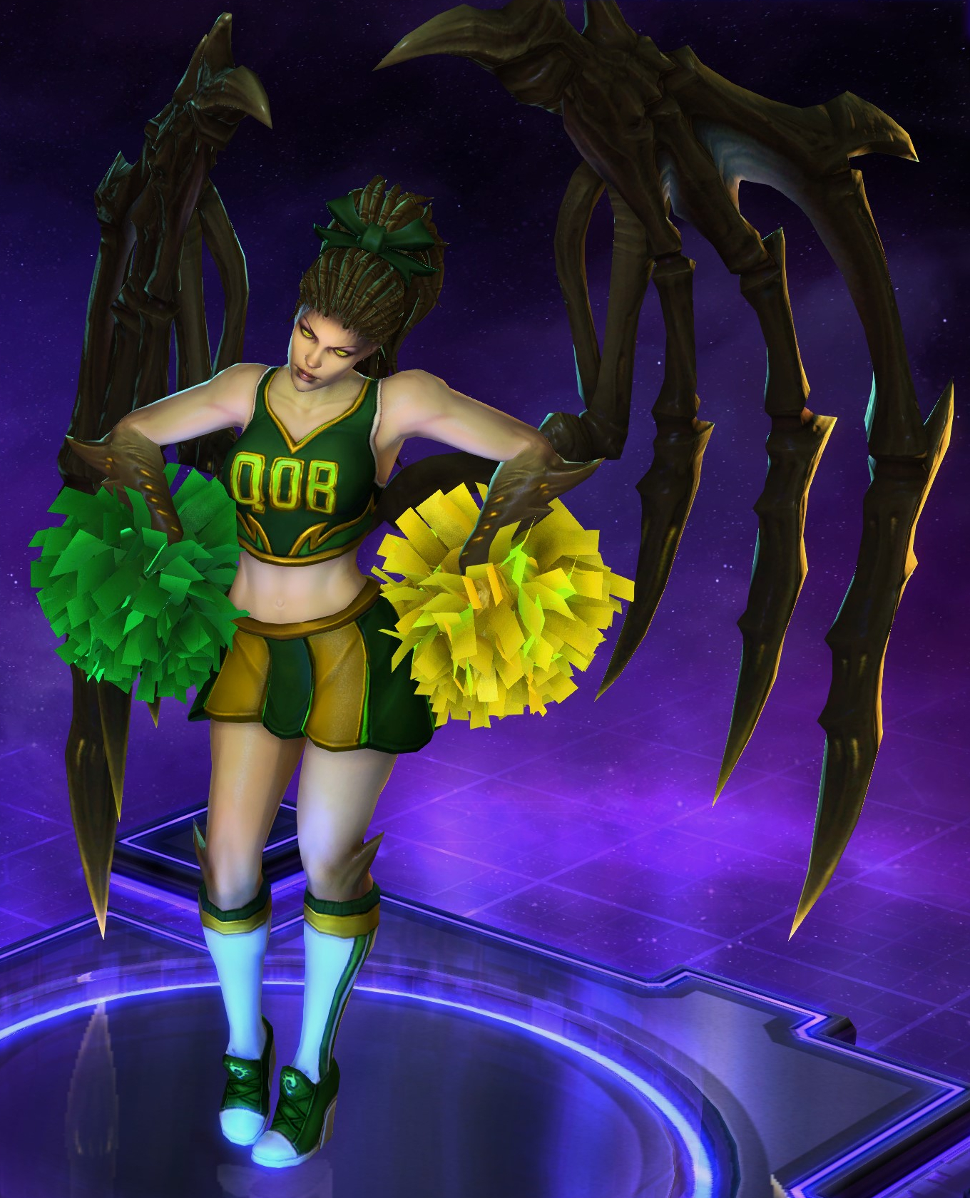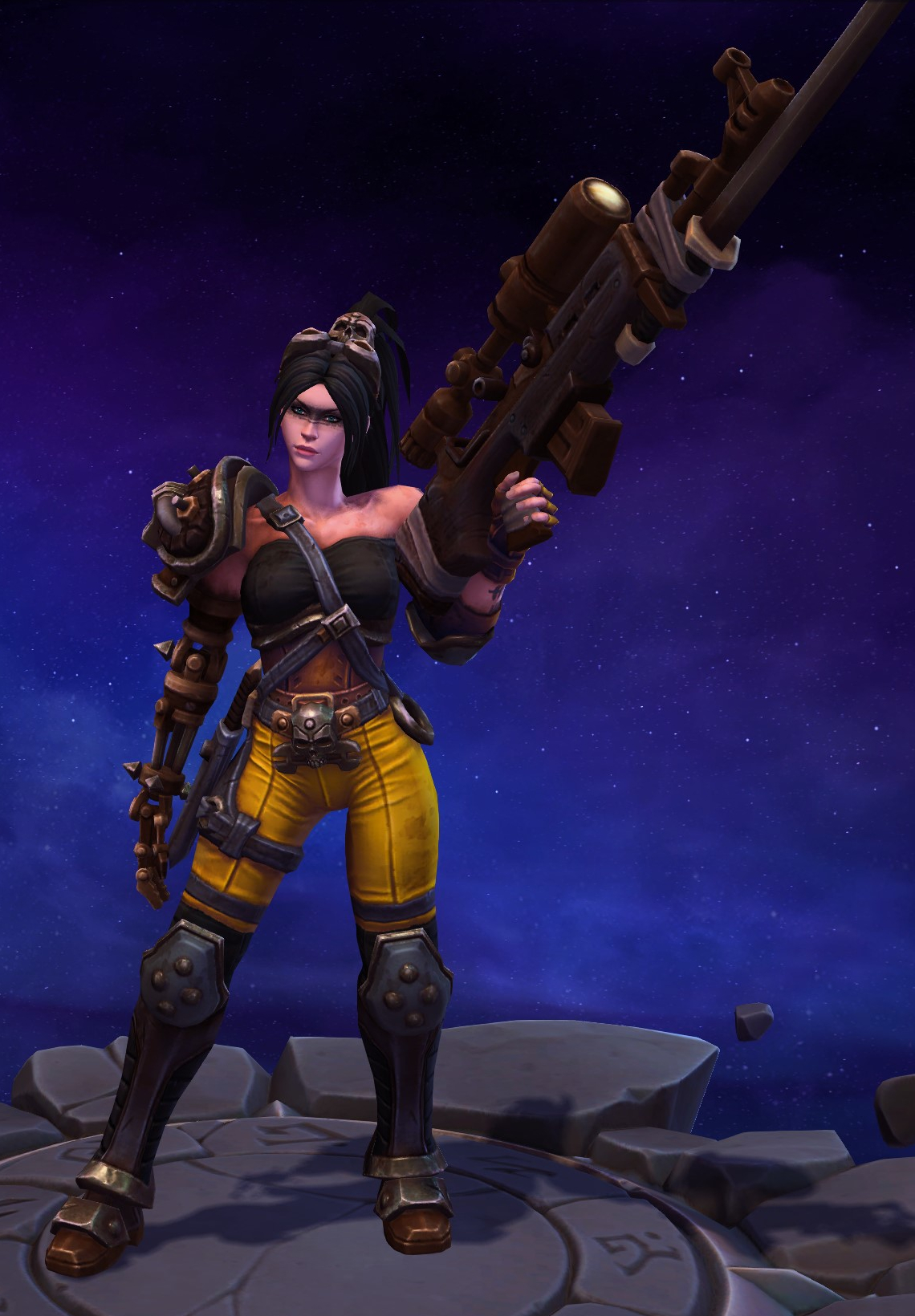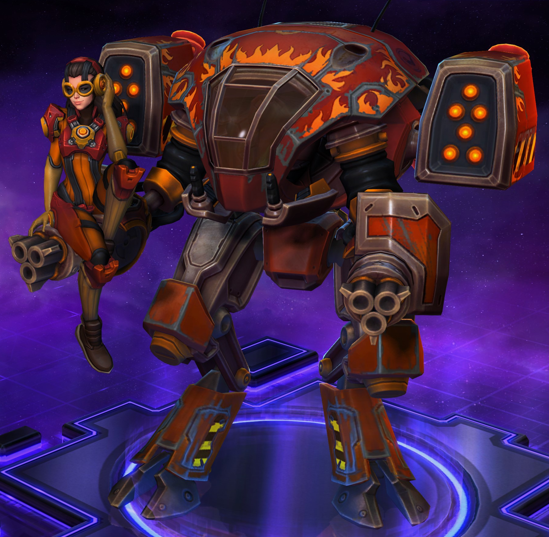 Skins are the cosmetic changes that change a character's appearance. Each Hero has a default skin, and additional skins can be bought from the In-Game Shop, with some forming a shared theme with other character skins. Each skin also has three variations, referred to as tints.